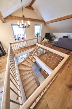 Geländer - Handlauf Profiliert V2A Sprossen ohne Holzeinlage Pfosten Abgefasster Kopf mit Fasse und V2A Ring